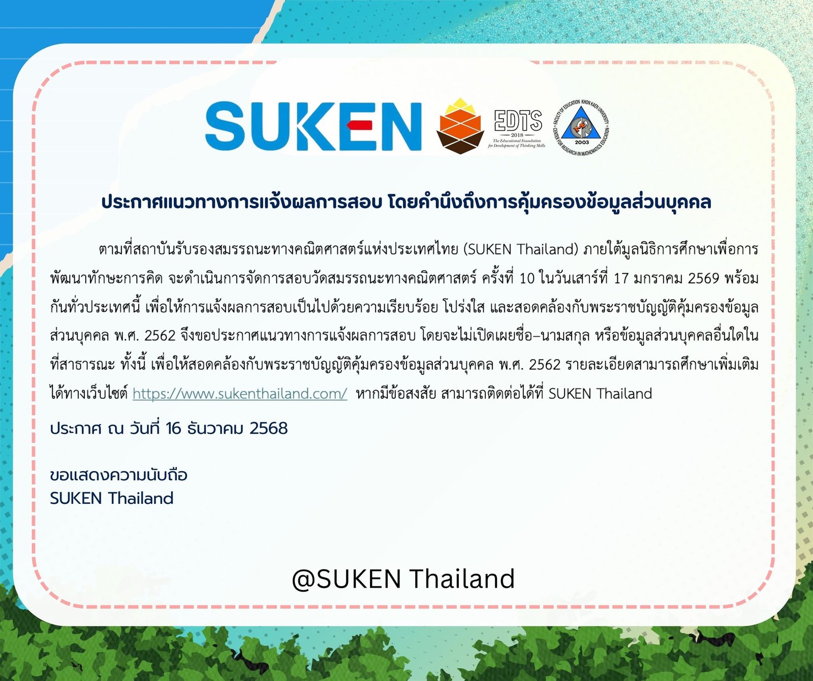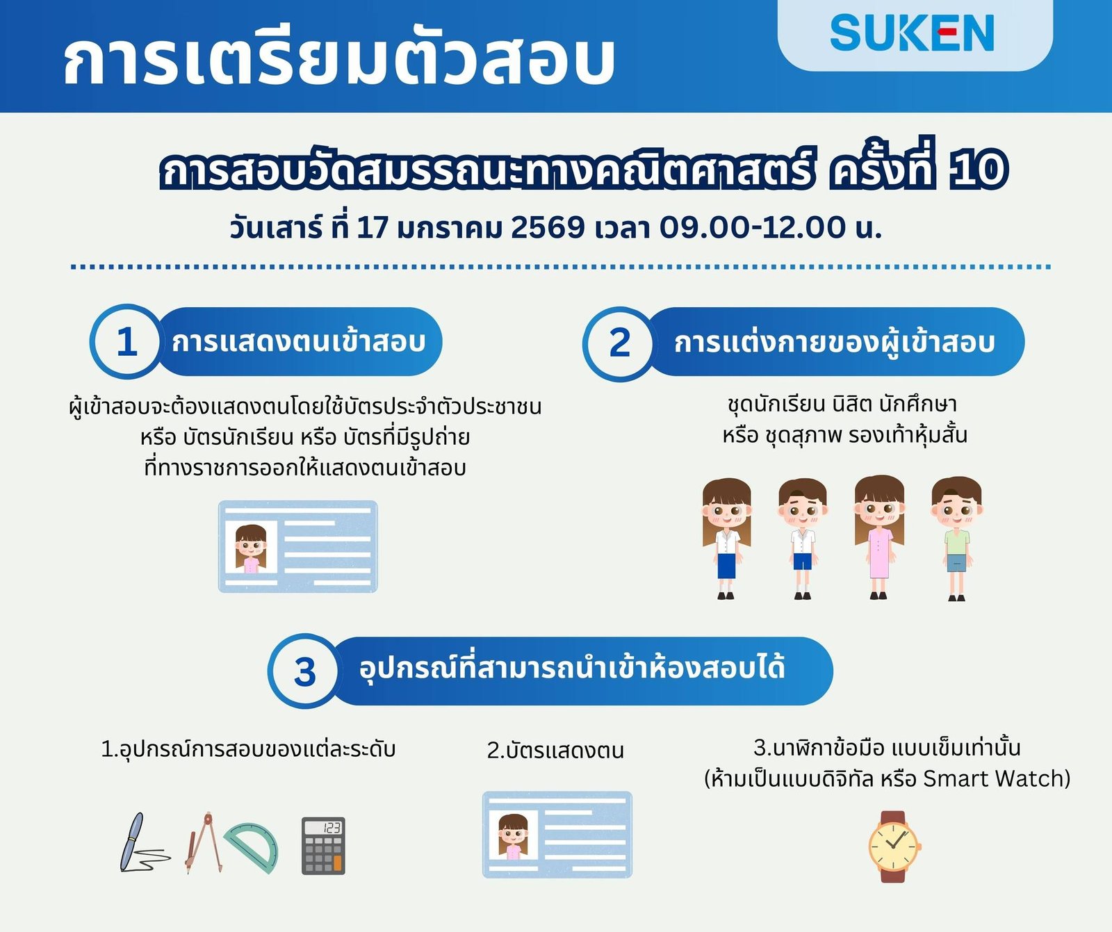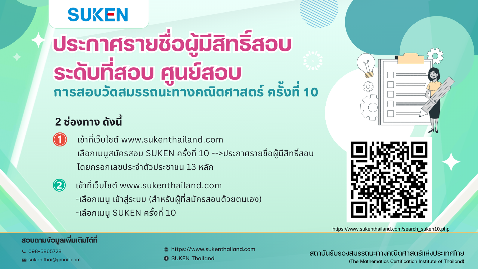ประกาศสถานที่สอบ การสอบวัดสมรรถนะทางคณิตศาสตร์ (SUKEN) ครั้งที่ 10