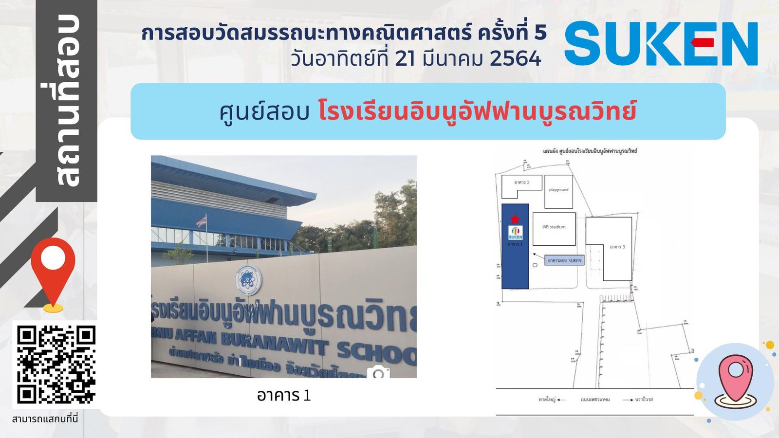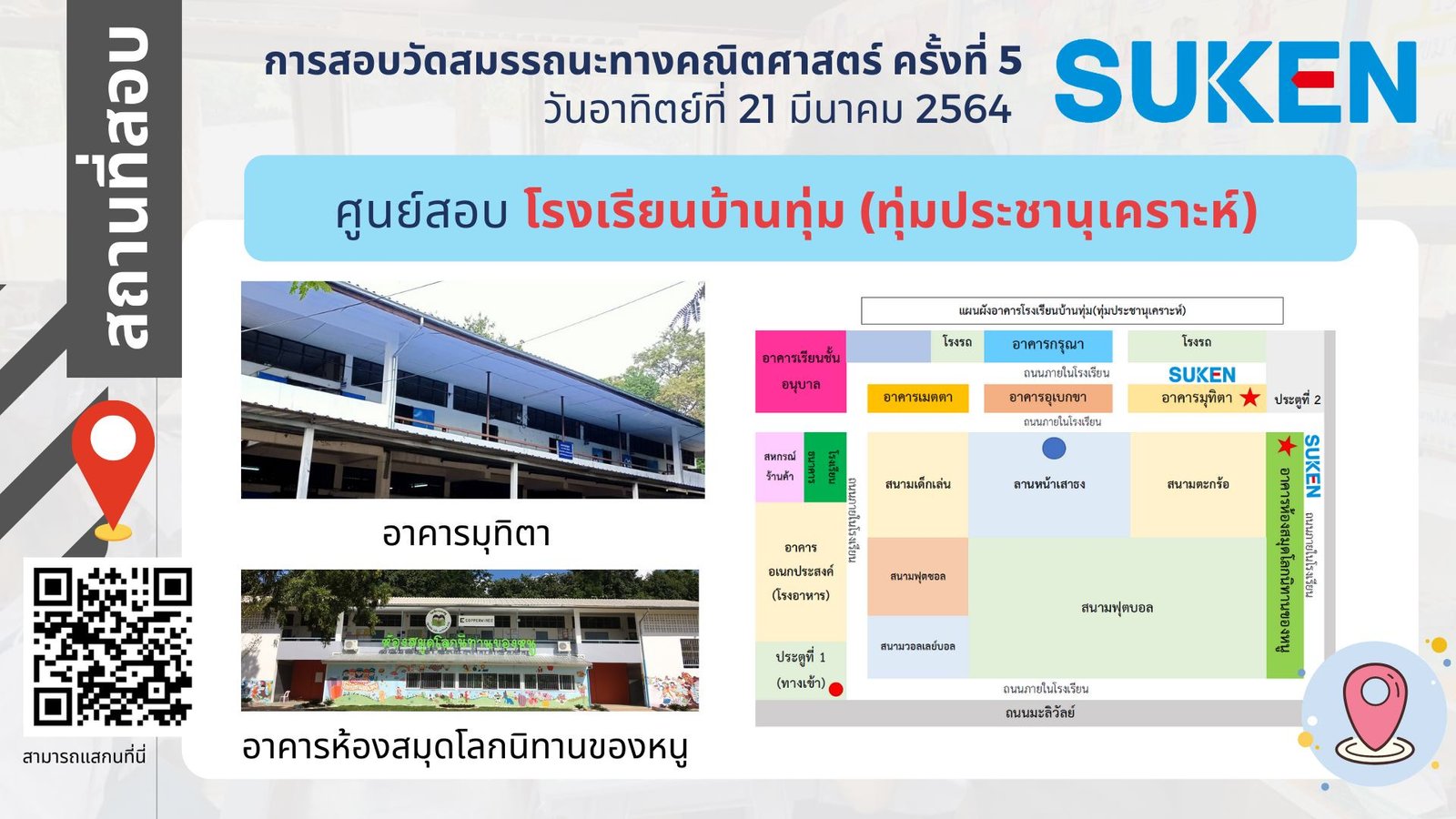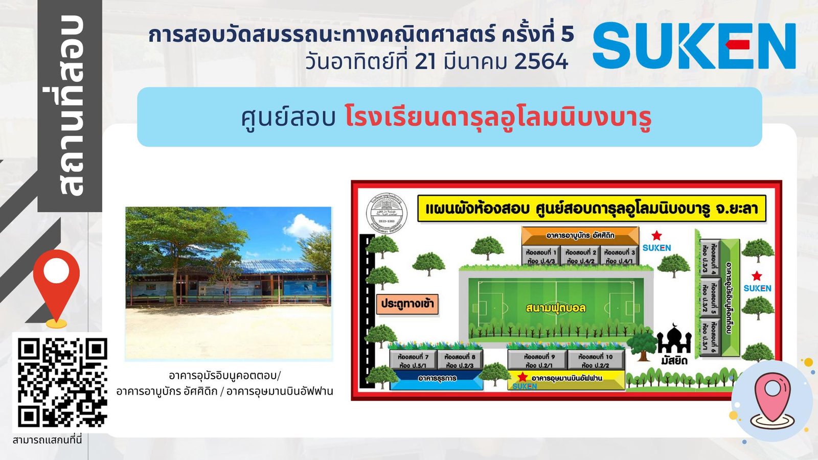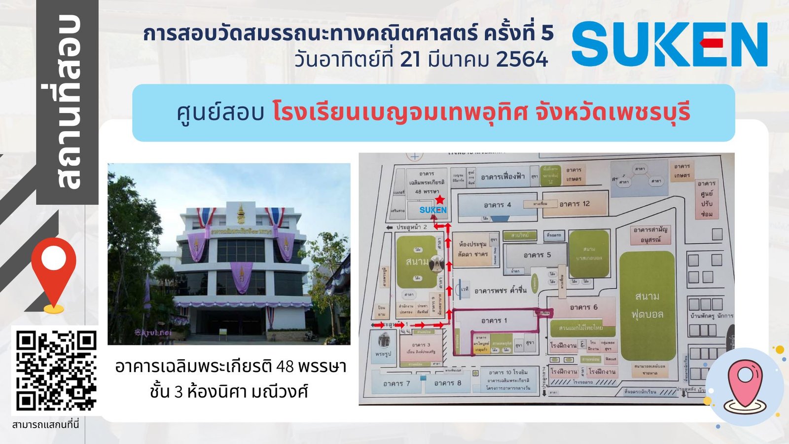 ภาพอาคาร สถานที่ ในการสอบวัดสมรรถนะทางคณิตศาสตร์ ครั้งที่ 5 วันที่ 21 มีนาคม 2564