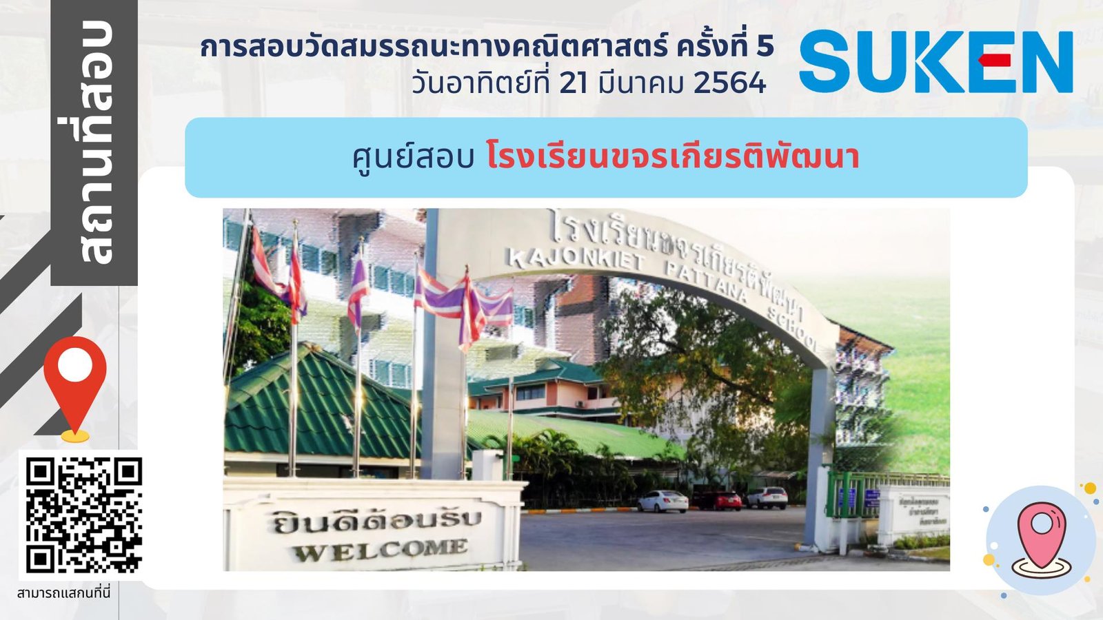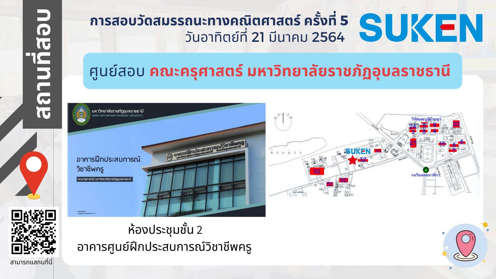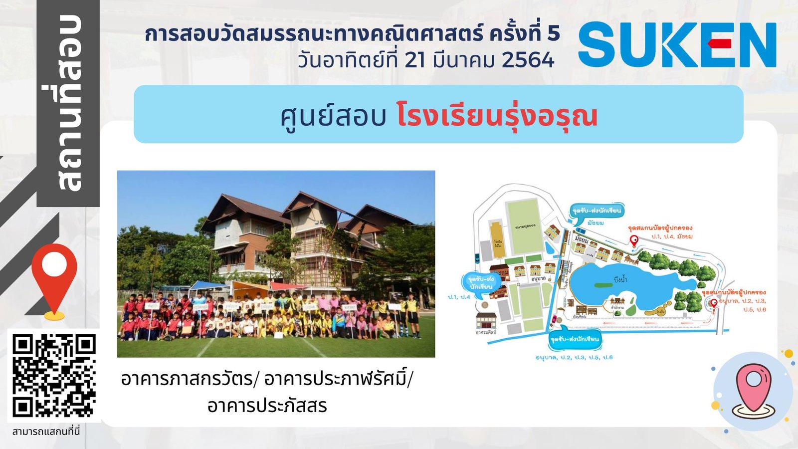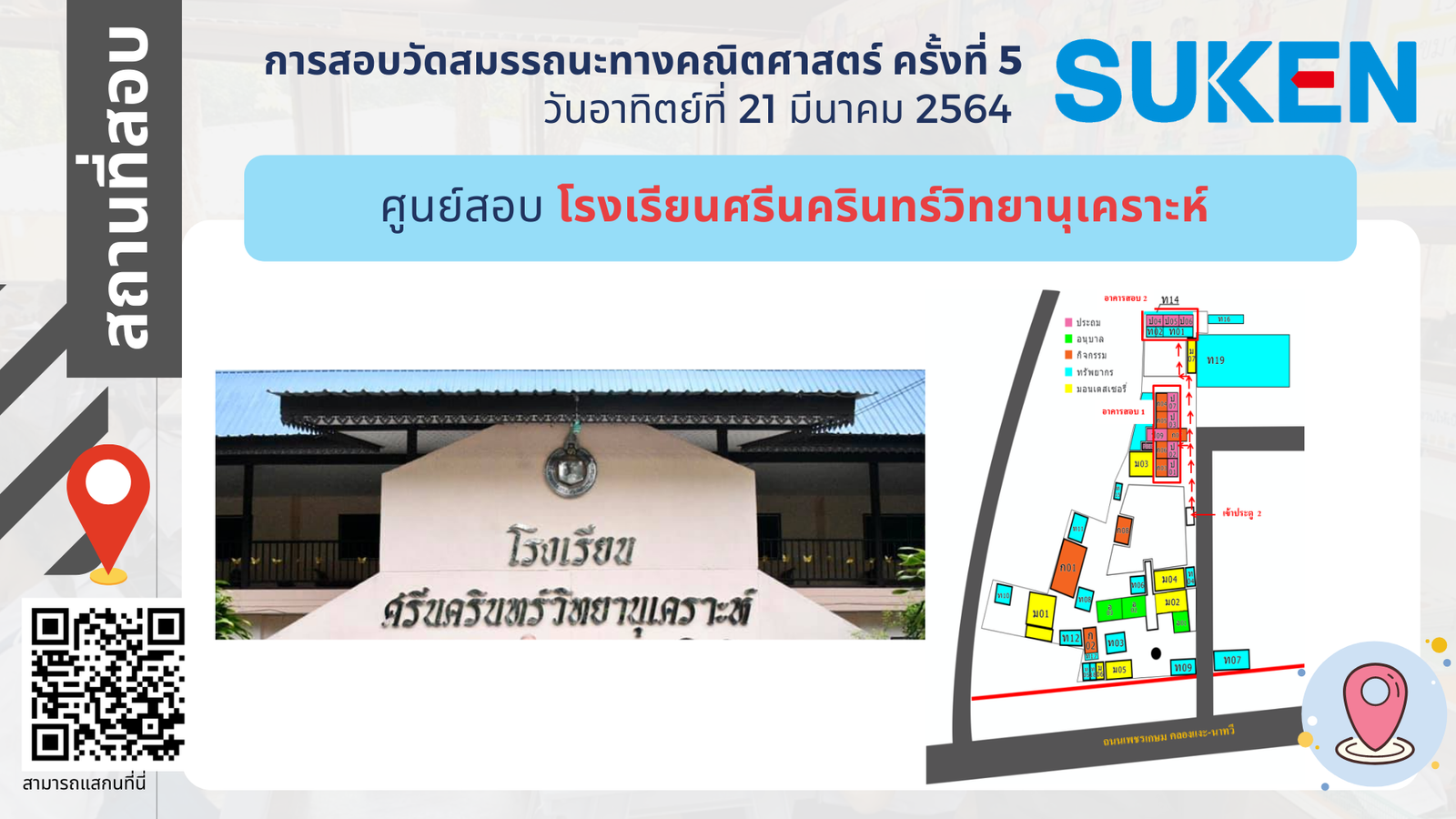 ภาพอาคาร สถานที่ ในการสอบวัดสมรรถนะทางคณิตศาสตร์ ครั้งที่ 5 วันที่ 21 มีนาคม 2564