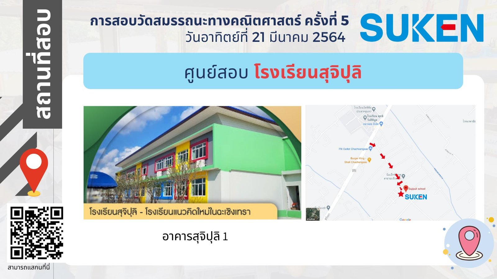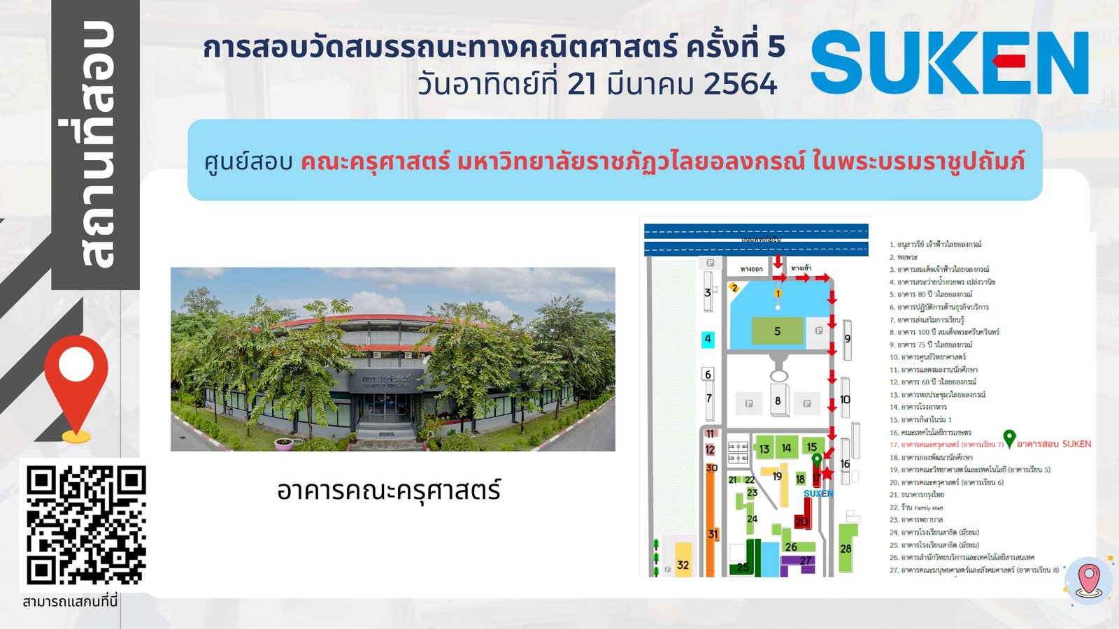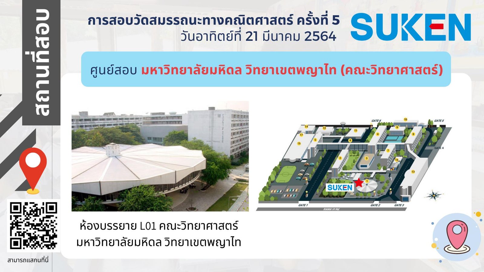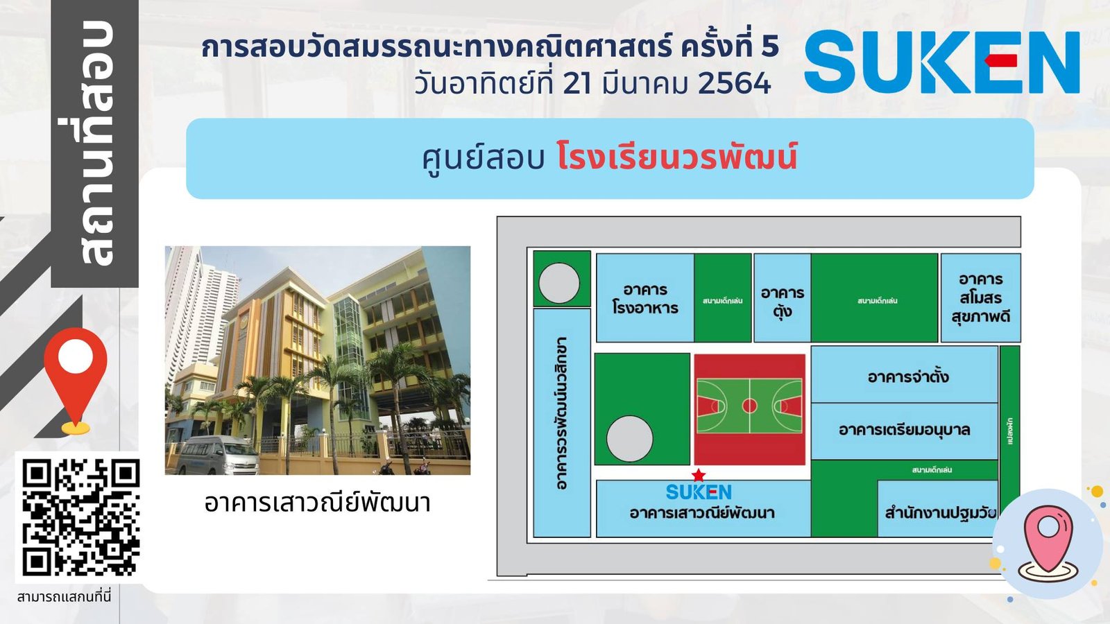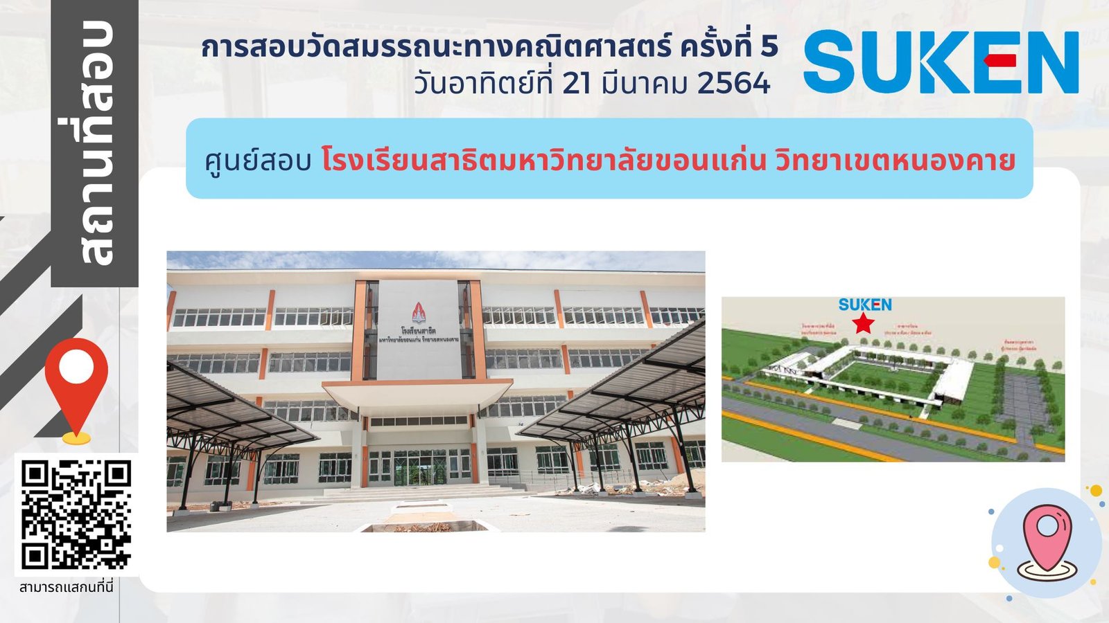 ภาพอาคาร สถานที่ ในการสอบวัดสมรรถนะทางคณิตศาสตร์ ครั้งที่ 5 วันที่ 21 มีนาคม 2564