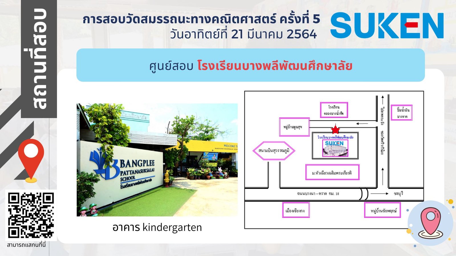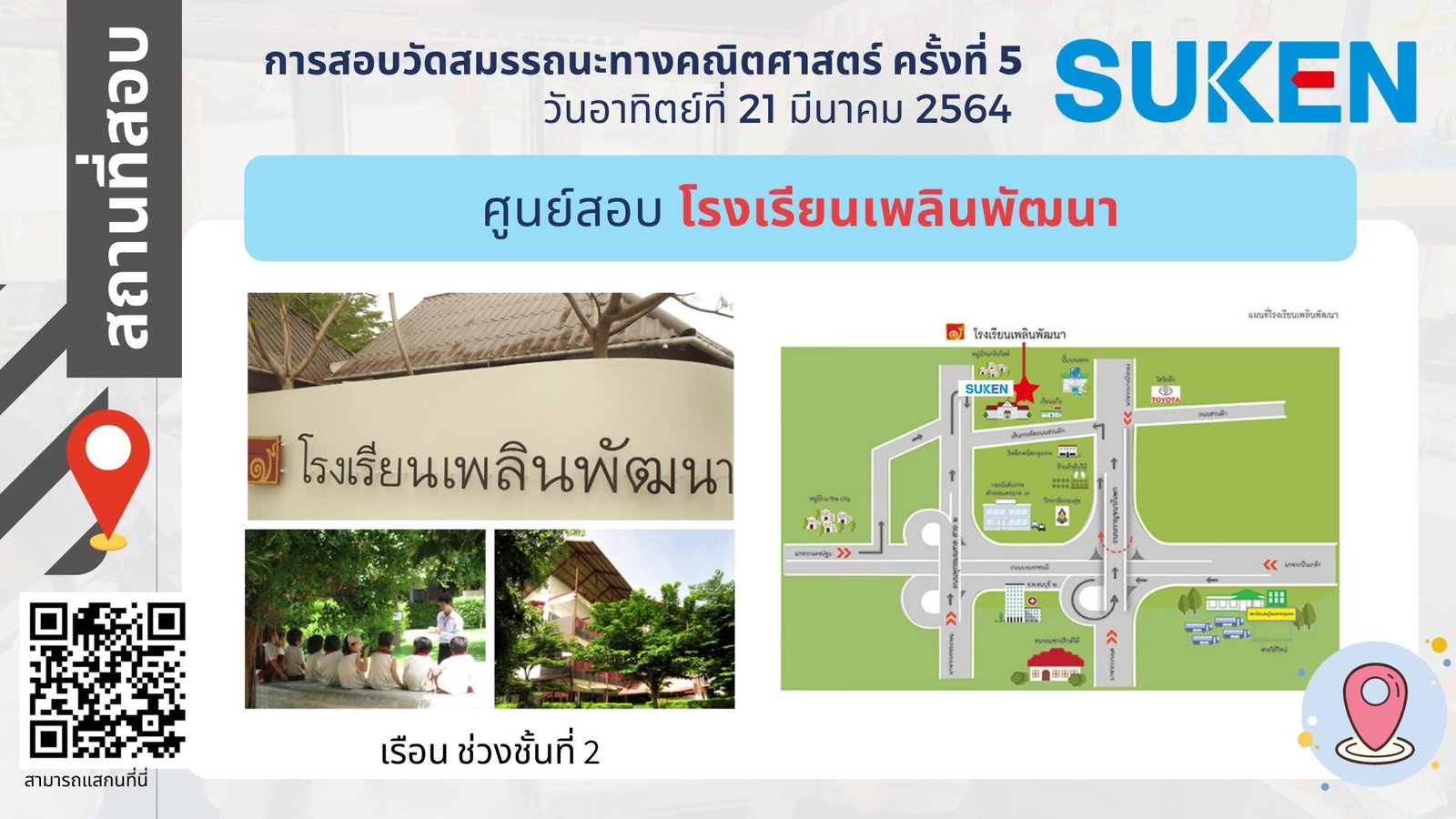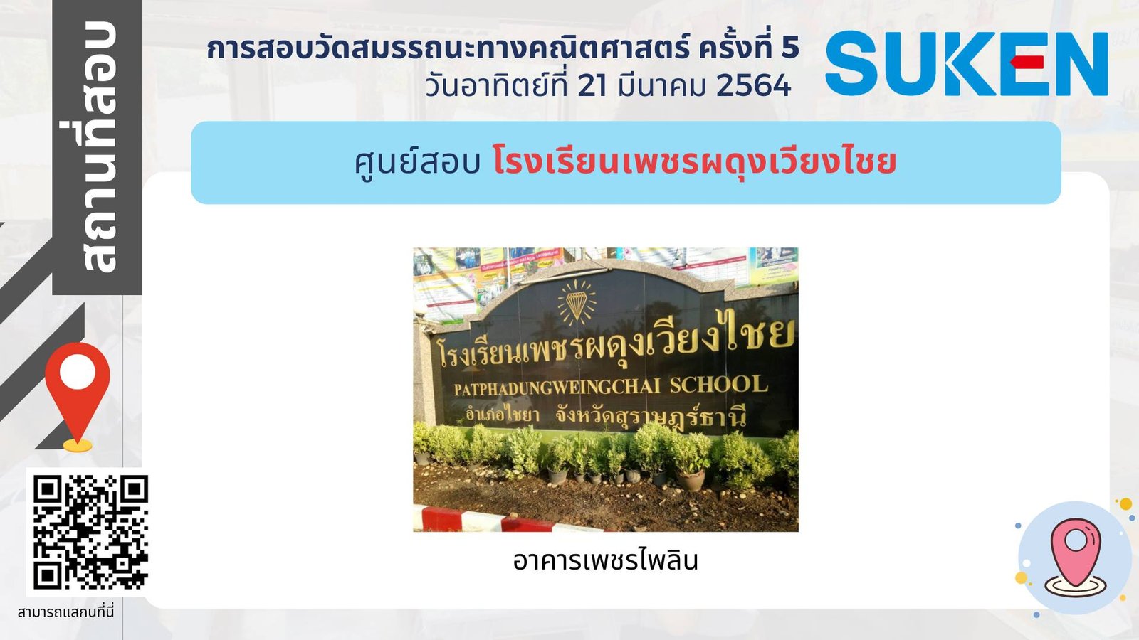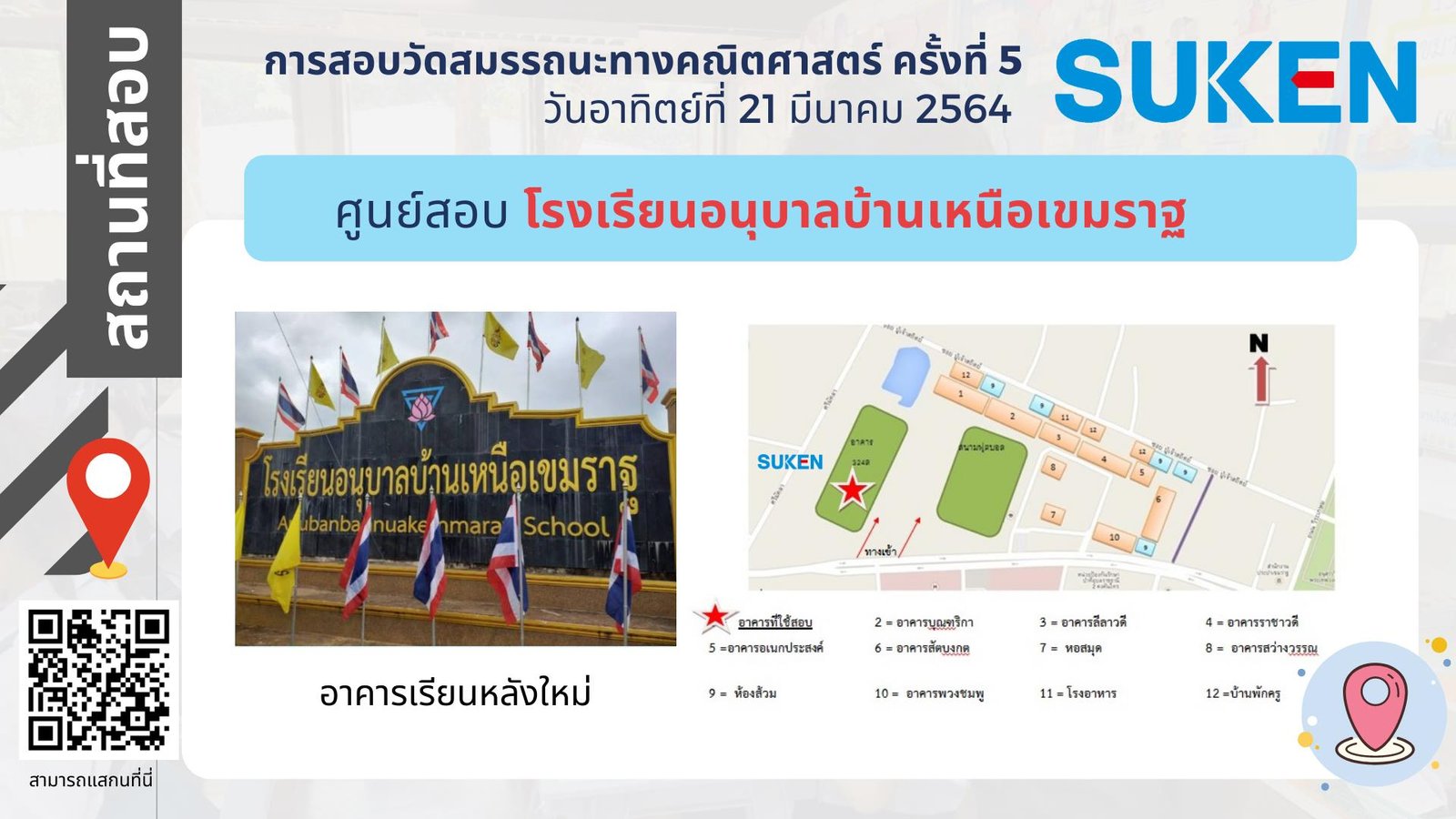 ภาพอาคาร สถานที่ ในการสอบวัดสมรรถนะทางคณิตศาสตร์ ครั้งที่ 5 วันที่ 21 มีนาคม 2564